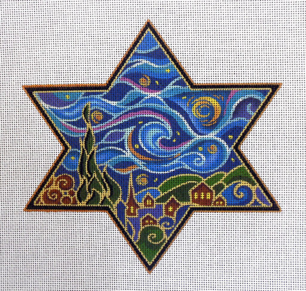 6.5″ Starry Night Star of David Needlepoint Canvas