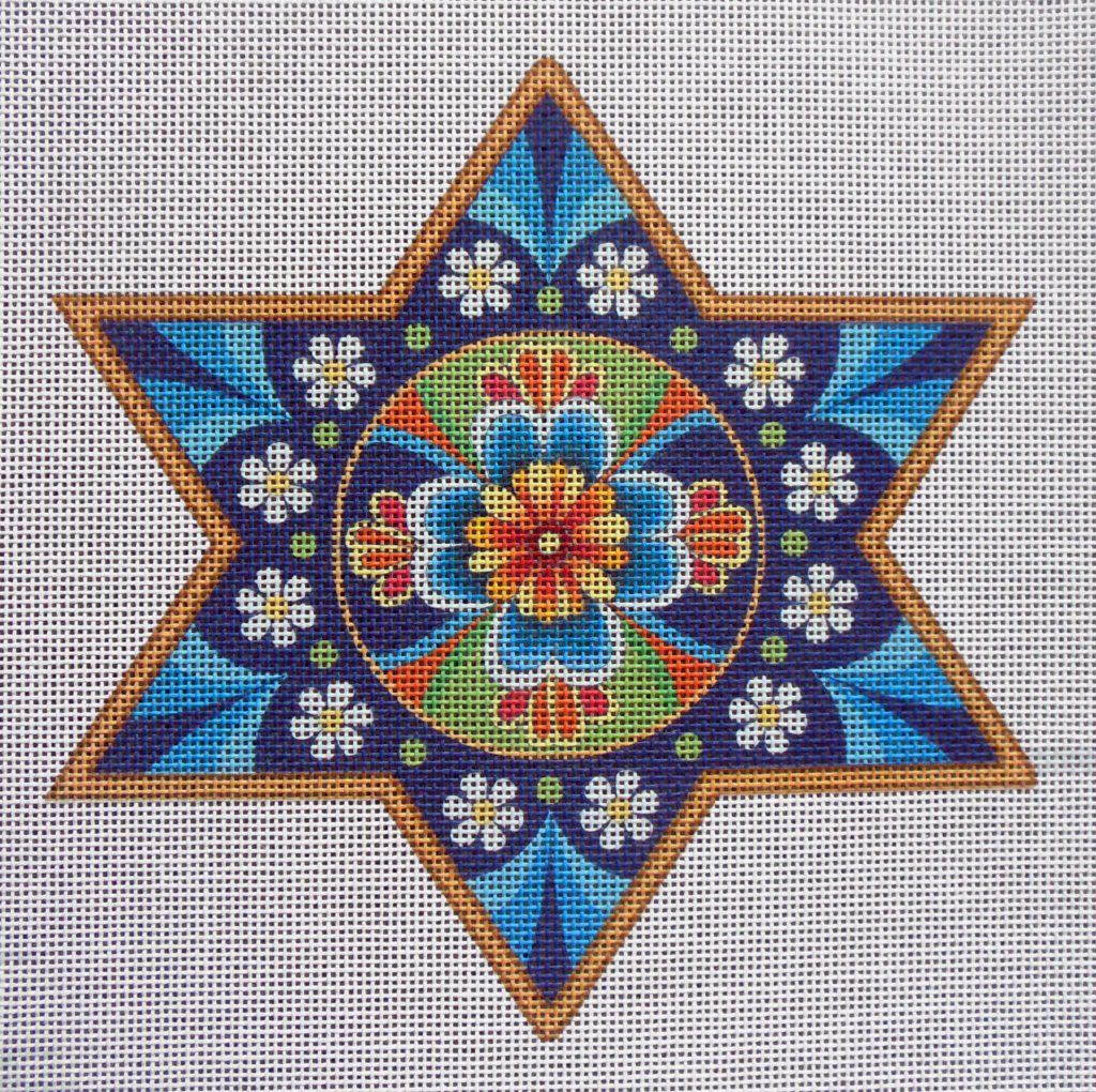 Star measures 6.5″x6.5″ with approx. 2″ canvas border. 18 count Zweigart Deluxe mono canvas. *A portion of all Judaica Hearts & Stars sales will be donated to the Israeli Red Cross.