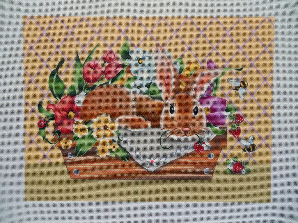 18 count Zweigart Deluxe mono canvas with hand painted detail.