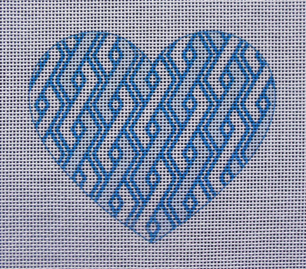 Heart measures 4″ wide x 3.5″ tall with 2″ canvas border. 18 count Zweigart Deluxe mono canvas. Canvas only