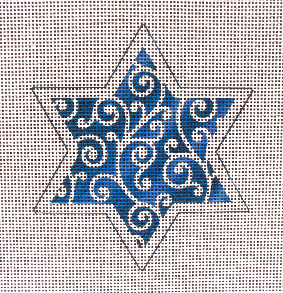 Blue Swirl Star of David Needlepoint Canvas
