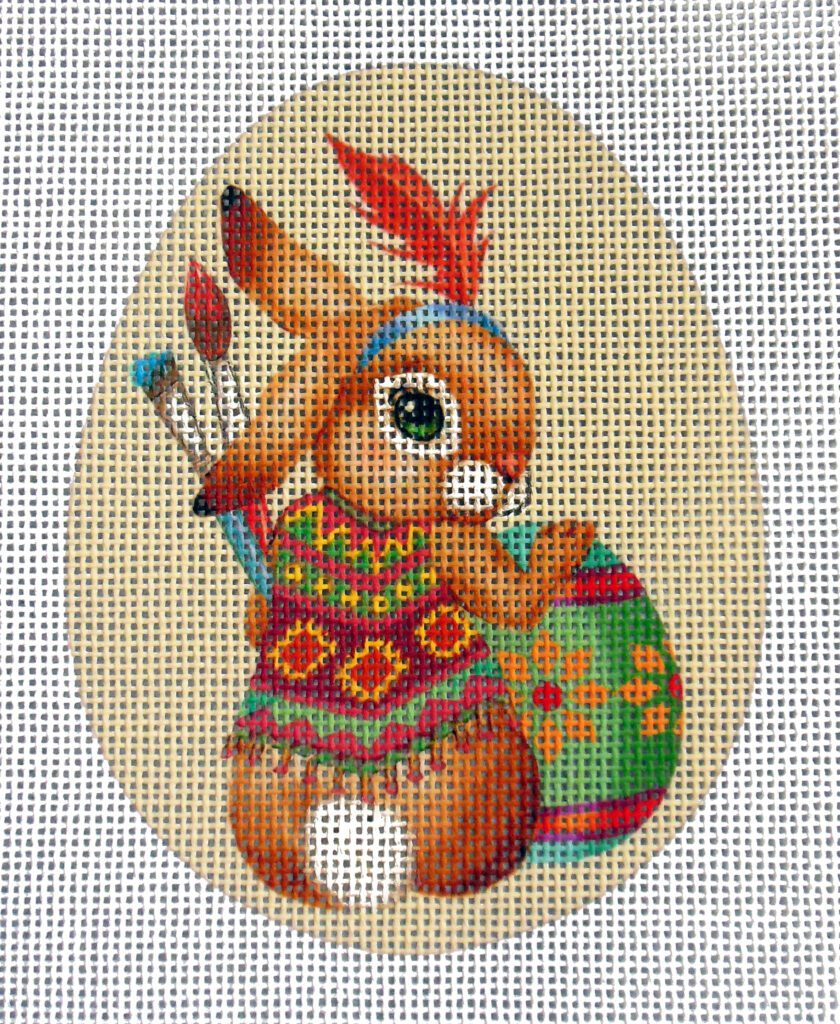 Egg shape measures 3.5″x4.5″ 18 mono Zweigart Deluxe canvas Original art print with hand painted detail Threads not included