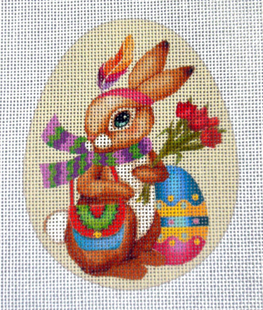 Egg shape measures 3.5″x4.5″ 18 mono Zweigart Deluxe canvas Original art print with hand painted detail Threads not included