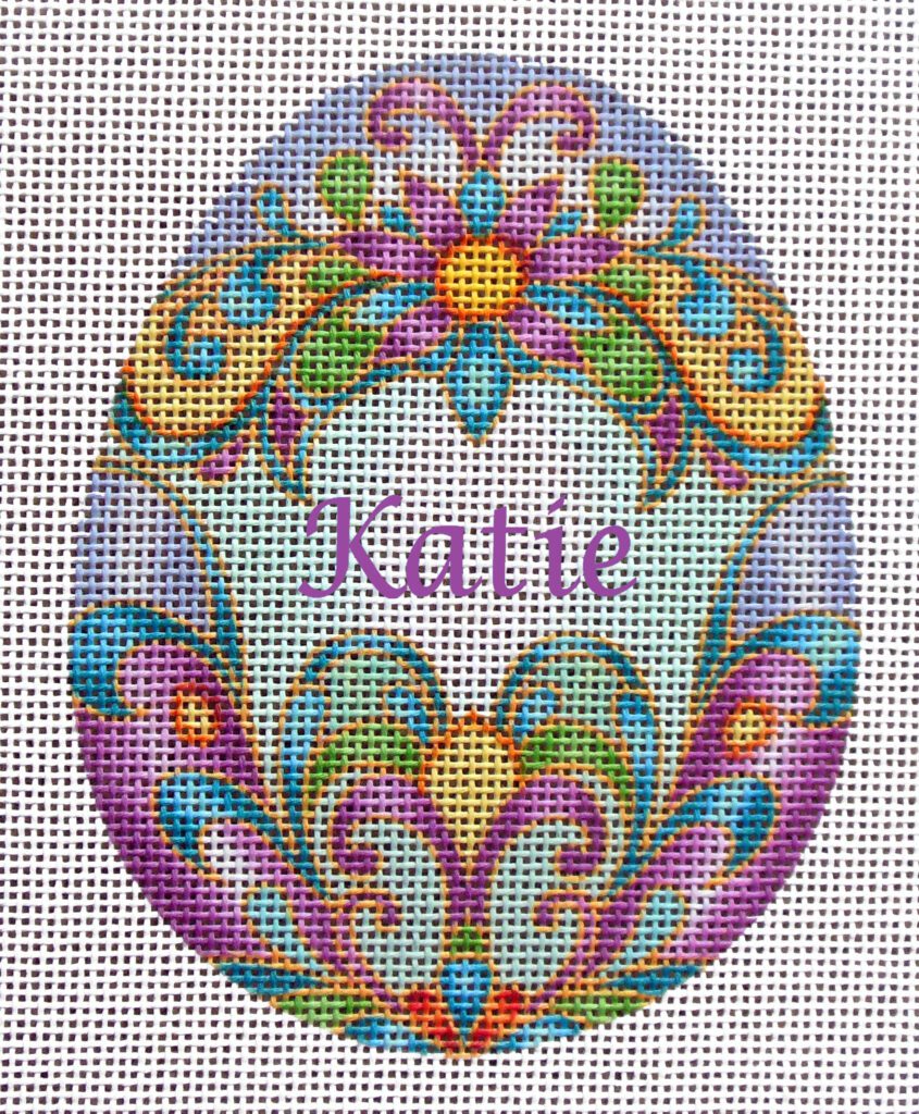 Egg measures 3.5″x4.5 with approx 2″ canvas surround Personalization Optional (Click here to add name) 18 count Zweigart Deluxe mono canvas. Canvas only