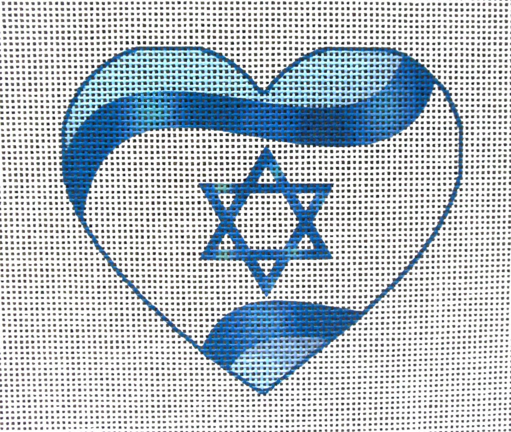 Heart measures 4″ wide x 3.5″ tall with approx. 2″ canvas border. 18 count Zweigart Deluxe mono canvas. *A portion of all Judaica Hearts & Stars sales will be donated to the Israeli Red Cross.