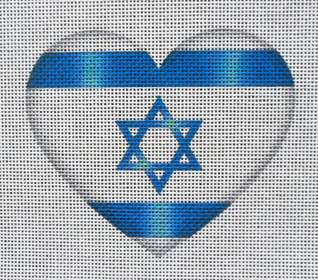 Heart measures 4″ wide x 3.5″ tall with approx. 2″ canvas border. 18 count Zweigart Deluxe mono canvas. *A portion of all Judaica Hearts & Stars sales will be donated to the Israeli Red Cross.