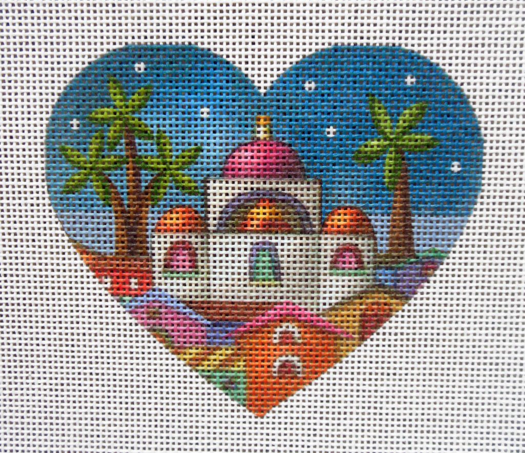 Heart measures 4″ wide x 3.5″ tall with approx. 2″ canvas border. 18 count Zweigart Deluxe mono canvas. *A portion of all Judaica Hearts & Stars sales will be donated to the Israeli Red Cross.