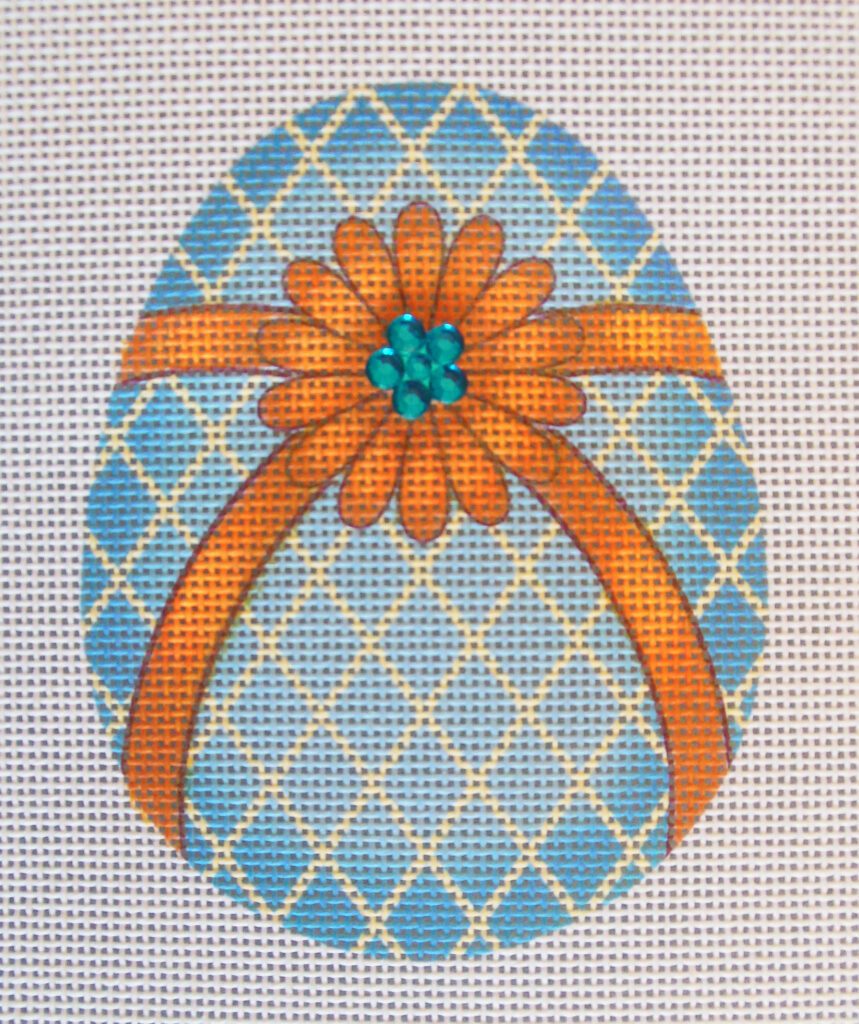 Sapphire Blue Flower Egg Needlepoint Canvas